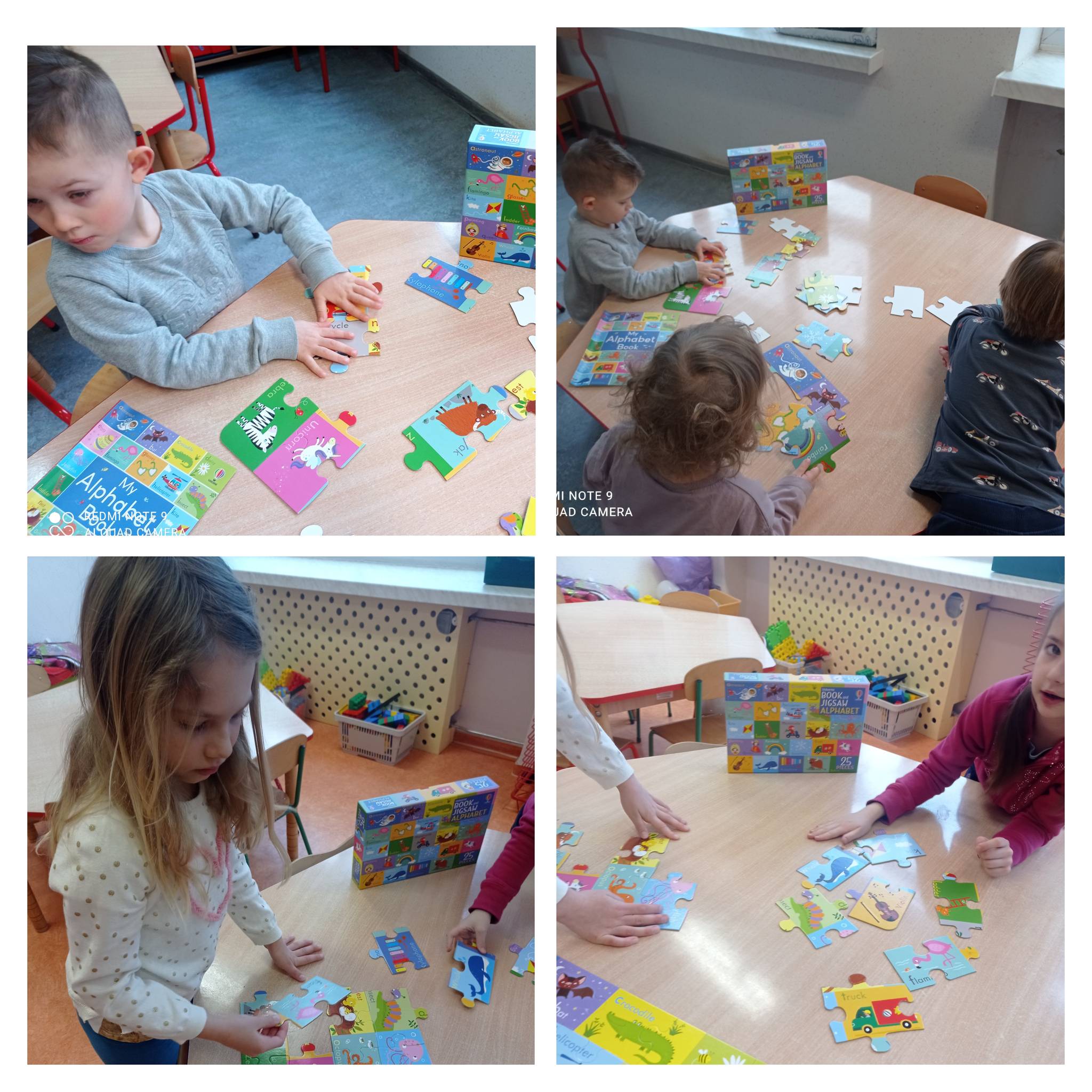 Przedszkolaki z grup 0B i 0C za pomocą gier i zabaw leksykalnych poznawali angielskie abecadło.