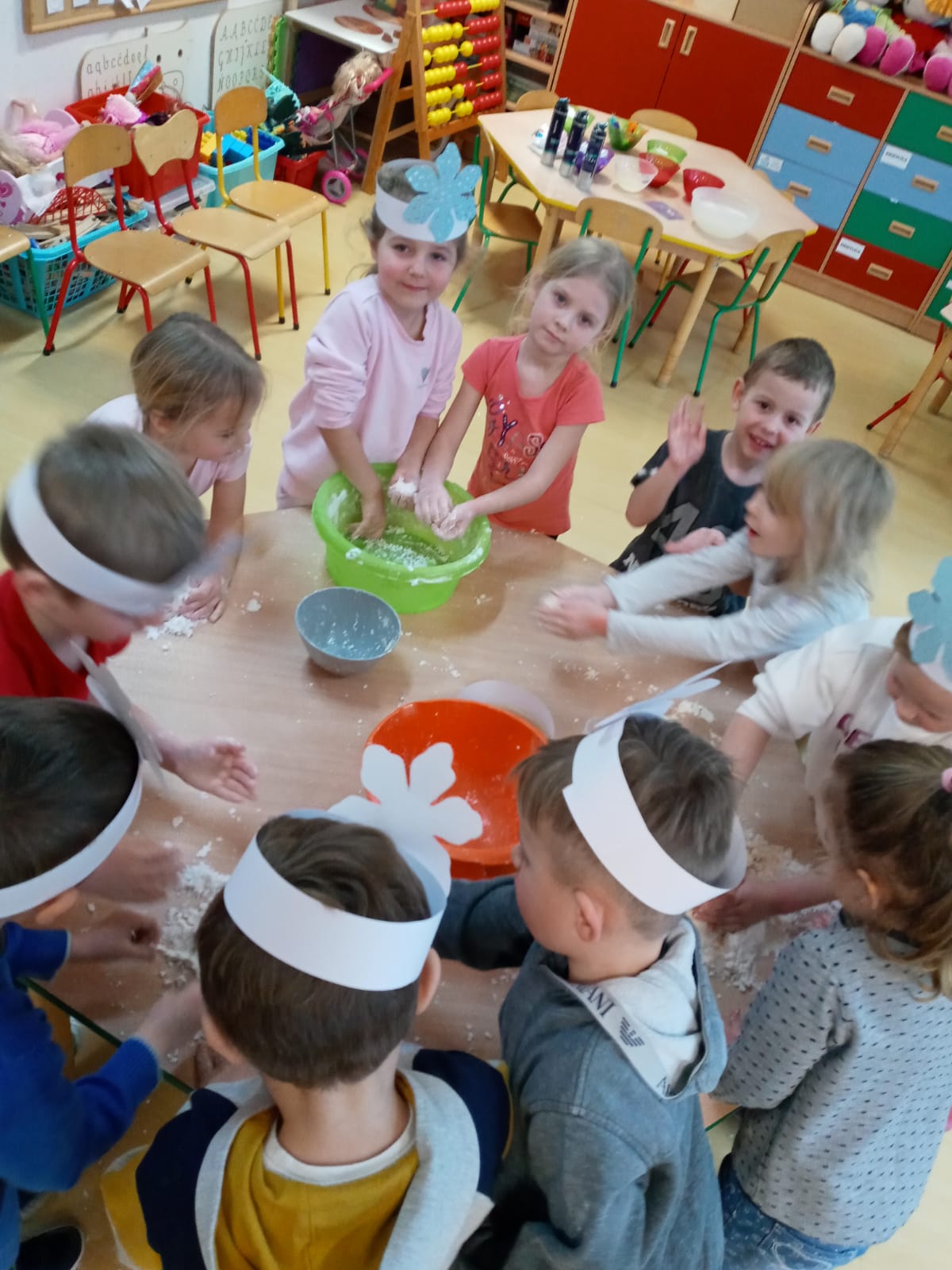 W piątek u przedszkolaków z oddziału 0A i 0C (średniaki i maluchy), odbył się Dzień Śniegu. Przedszkolaki miały okazję do poznawania rzeczywistości przyrodniczej poprzez obserwację, eksperymenty i odkrywanie właściwości śniegu. Wszystkim dzieciom towarzyszył świetny humor i zabawa tworząc samodzielnie sztuczny śnieg