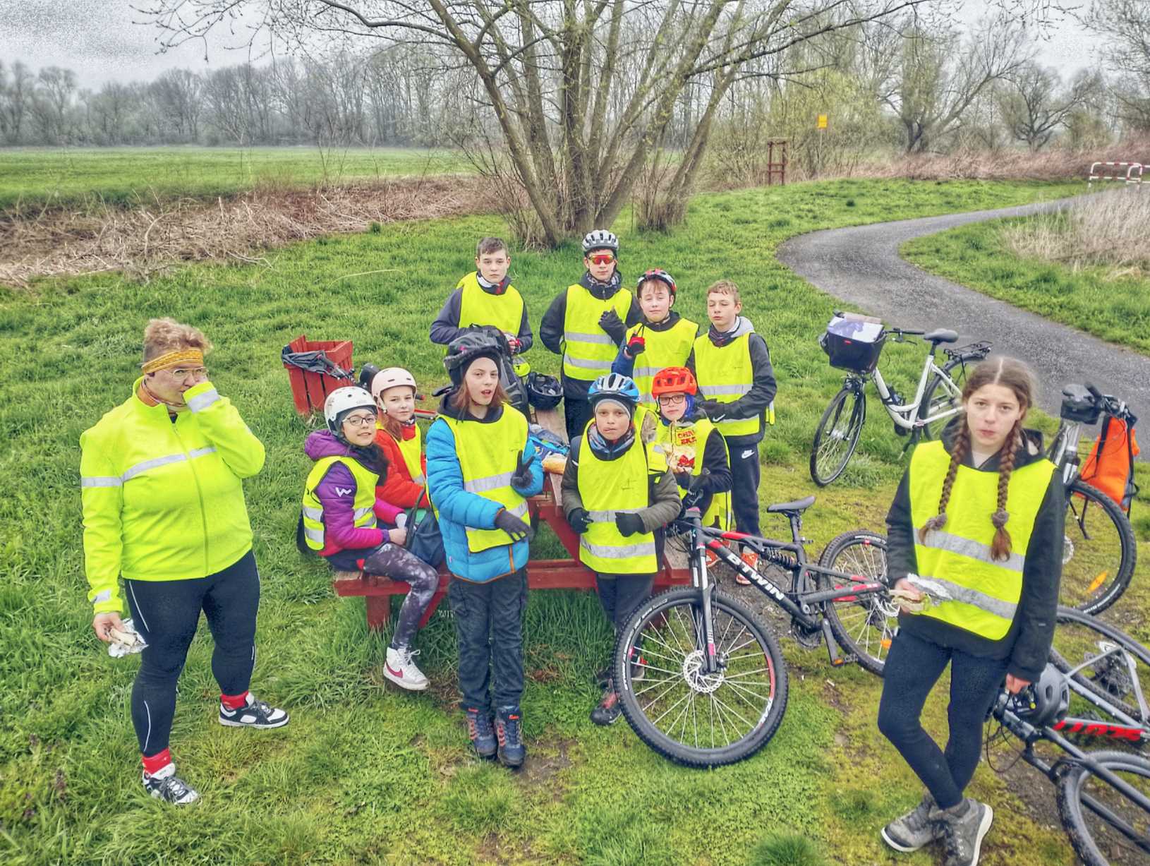 Rowerowy rajd" był jednym z kwietniowych projektów, który mogli wybrać nasi uczniowie. Choć pogoda nam nie sprzyjała (czasami padała mżawka, a słońce nie wyjrzało zza chmur nawet na minutę!), to nie poddaliśmy się i w pełni zapału przejechaliśmy trasę ze Stalagu przez Radomierzyce aż do zapory na Witce.